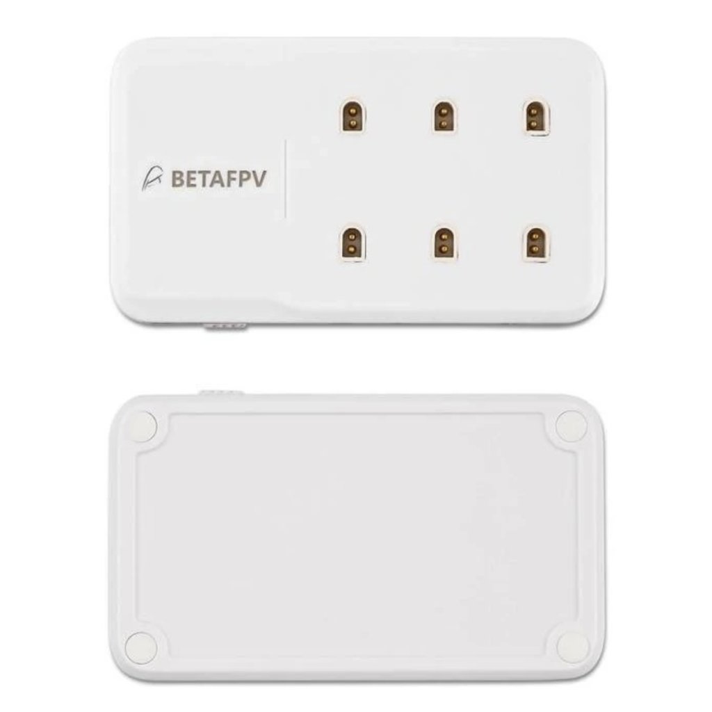 - BETAFPV Charger V2 je kompaktní a přenosná 6portová nabíječka určená pro současné nabíjení baterií s konektory BT2.0 a PH2.0. Podporuje rychlé nabíjení díky protokolům PD3.0, QC3.0 a BC1.2, přičemž každý port zvládá proud až 1A.