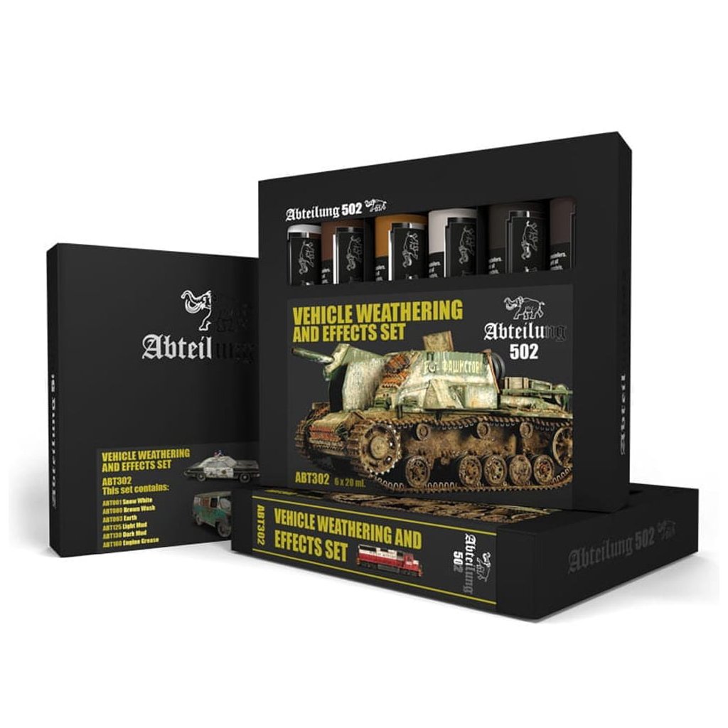 Set olejových barev ABT302 Vehicle Weathering and Effects Set (6x20ml tubes) prémiové značky Abteilung 502. Mají unikátní recepturu z vysoce kvalitních pigmentů, což umožní vysoce realistickou povrchovou úpravu.