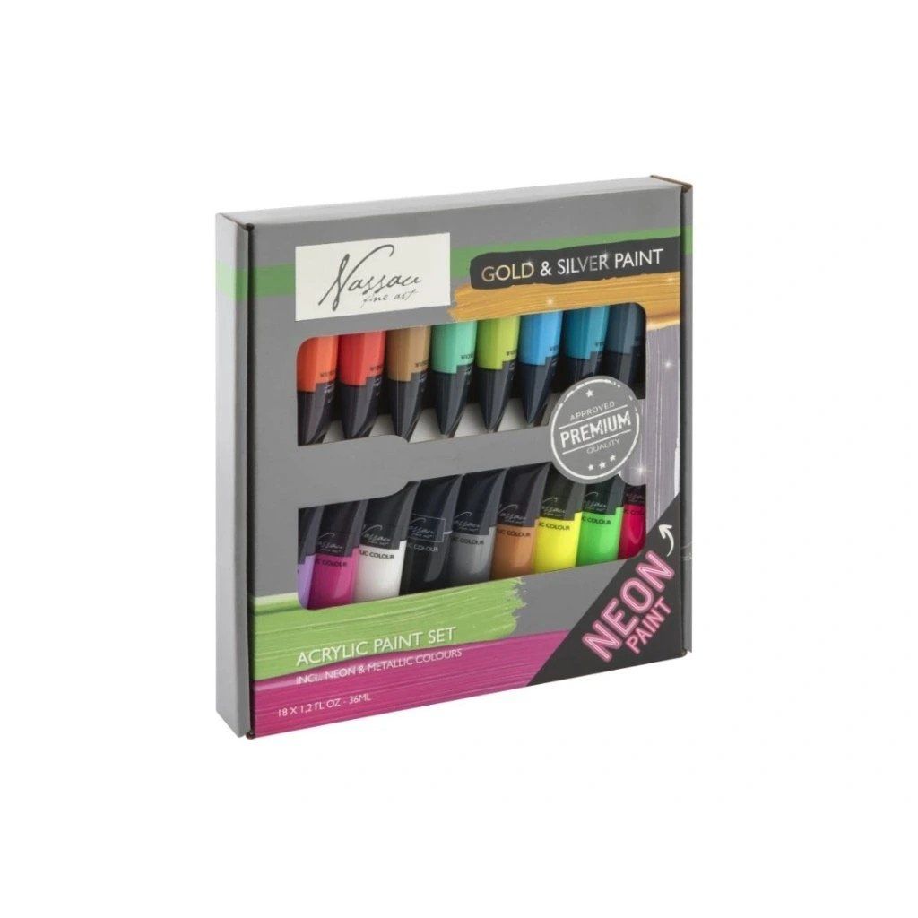 Akrylové barvy neonové+ metalické 18 x 36ml