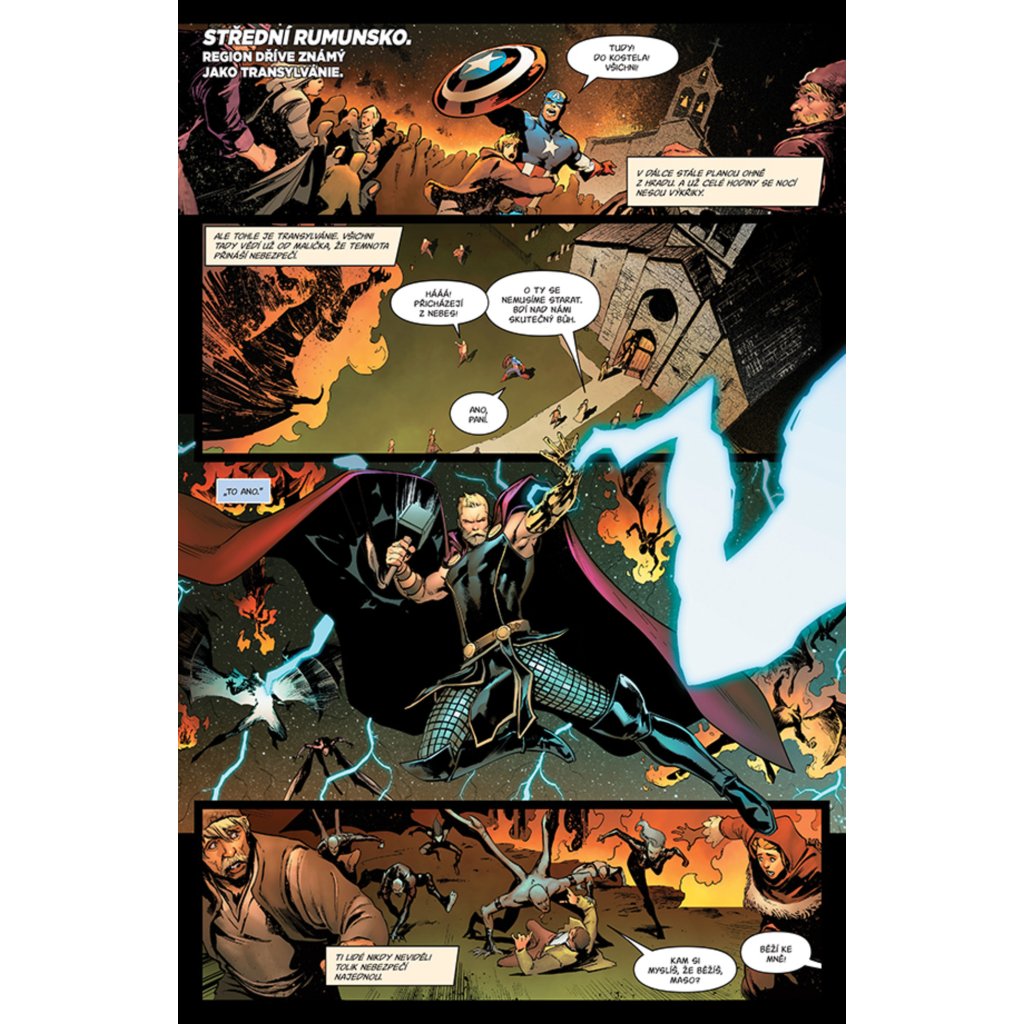 KRÁLOVSTVÍ UPÍRŮ! Transylvánie je v plamenech! Mezi upíry vypukla nelítostná a krvavá občanská válka… a v jejím centru stojí Plukovník stínů a jeho nová Legie neživých s jedinou otázkou: Kde je Dracula? A jestli Pána prokletých najdou Avengers jako první, co od něj mohou čekat? Bude Dracula jejich spojencem, nebo protivníkem? Nejmocnější hrdinové světa budou potřebovat expertní pomoc – vítej do Avengers, Blade! Stane se z Ghost-Ridera smrtonosný nepřítel? A až se prach usadí a vnikne nová říše upírů, kdo se stane vládcem prokletých? A do toho ještě přichází další cesta do hluboké historie a tajemství úplně první Iron Fist! Poznejte ženu, která jako první ovládla sílu draka Shou-Lao! Obsahuje sešity Avengers (2018) č. 13–17 od Jasona Aarona, Davida Marqueze, Andrea Sorrentina, Ericka Arciniega a Justina Ponsora