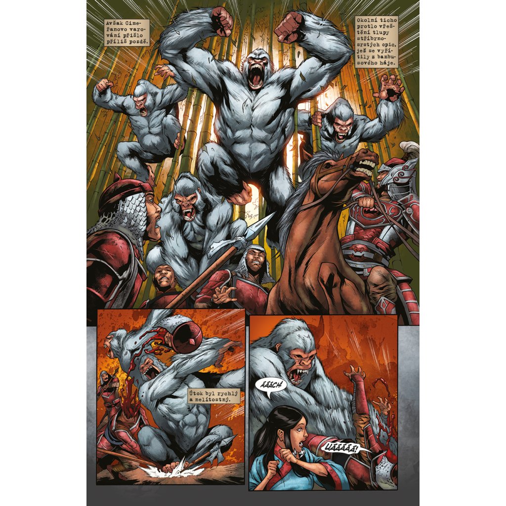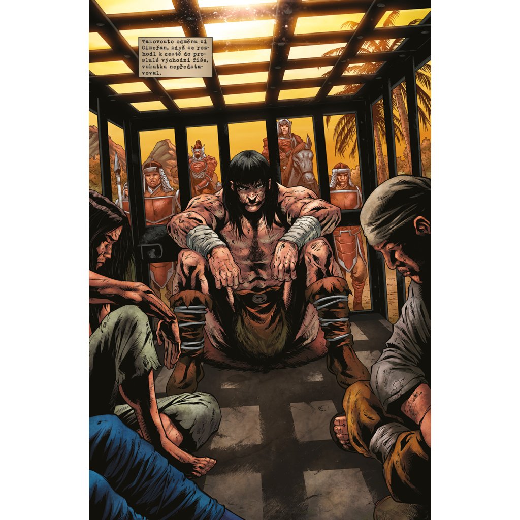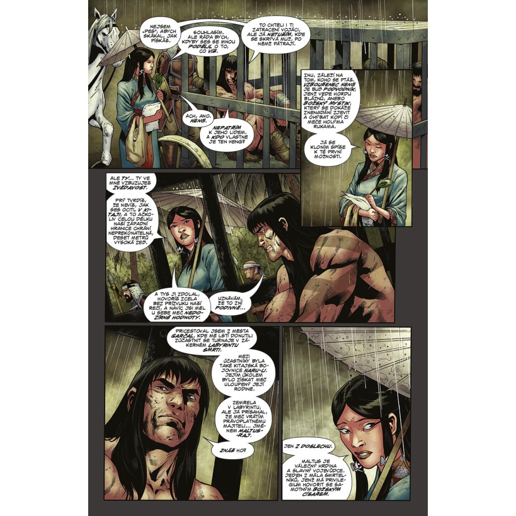 Po příchodu do Kitaje Conan skončil v poutech, avšak statečného barbara jen tak nějaké okovy nezastaví! Bleskurychle naplánuje útěk a získá nového spojence v půvabné císařské úřednici, avšak v zákoutích kitajské džungle číhá lítá zvěř i krvežízniví bandité. Podaří se Conanovi vrátit démonický meč jeho pravému majiteli, přežít pikle na císařském dvoře a v pořádku se vrátit domů? Knihu uzavírá jubilejní třístý sešit série Barbar Conan s třemi povídkami hostujících autorů.
