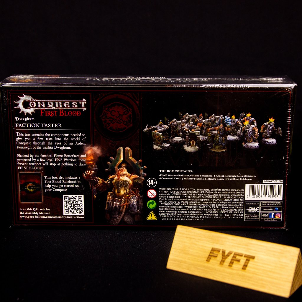- Faction Starter Set obsahuje miniatury frakce Dweghom a pravidla, abys mohl okusit figurkovou hru Conquest.