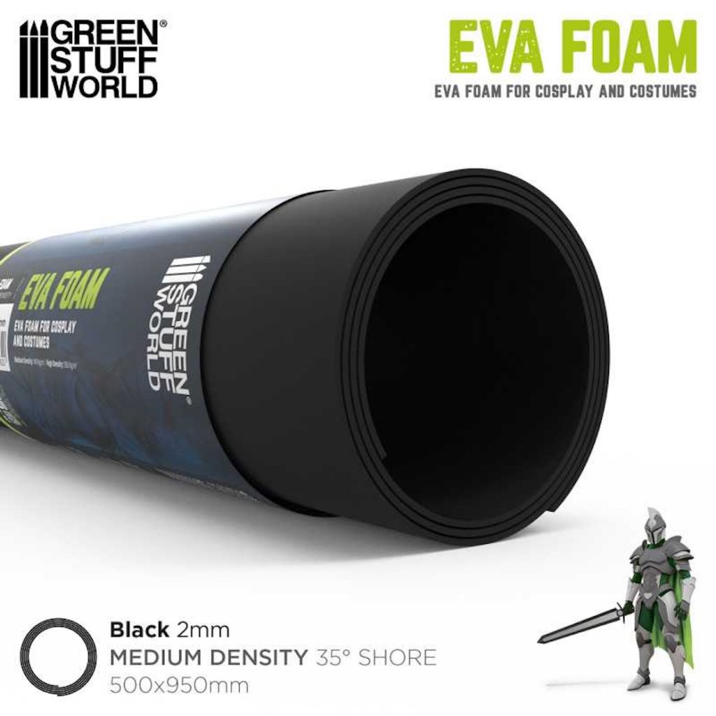 Cosplay EVA foam 2mm - Medium Density - pěna pro výrobu kostýmů - Black (Green Stuff World)