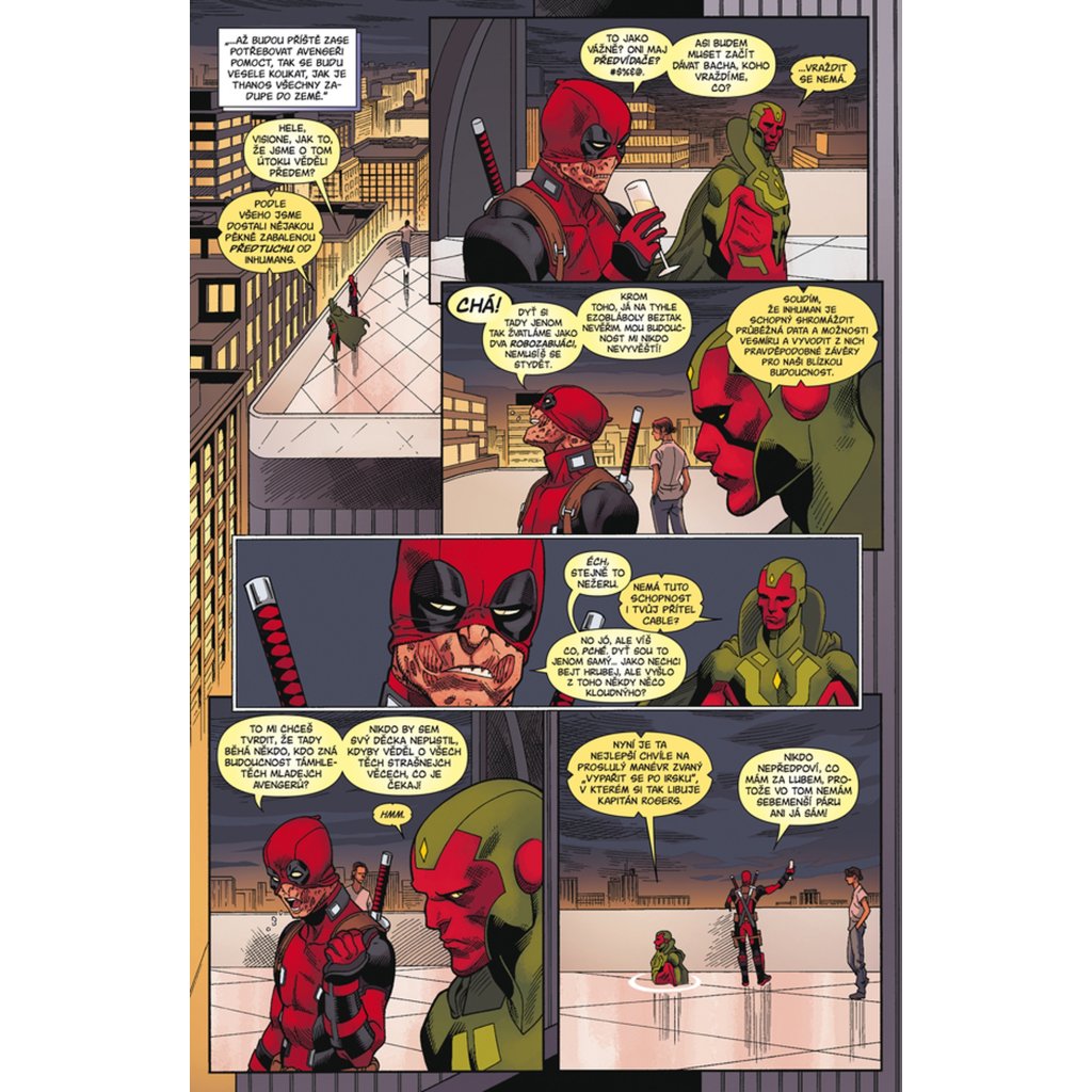 DEADPOOL A JEHO ŽOLDÁCI ZA PRACHY jsou bez debaty nejlepší superhrdinská parta v celém marvelovském univerzu. Z logiky věci je tudíž jasné, že když se odněkud přivalí hrozba kosmických rozměrů, nemůže u toho tahle skvadra chybět. Celý tenhle komiks není o ničem jiném, než o týmové práci a o tom, jak si navzájem nelézt na nervy! Jo, počkat vlastně, ona to je OBČANSKÁ VÁLKA II – takže to bude asi taky trochu o tom, kdo poletí z kola ven! Takže se docela hodí, že všichni žoldáci nesnášejí svého šéfa a nemůžou se dočkat, až dostanou padáka! Deadpoola má sice každý rád – ale jenom dokud pro něj nepracuje. Jak k tomuhle rozkolu vlastně došlo? Odpověď vás čeká uvnitř! A aby toho nebylo málo, čeká tam také někdejší vnitřní hlas, který kdysi Deadpoolovi brebentil v hlavě – Madcap je zpátky a chystá strašlivou pomstu! Nebude to nic pěkného, na to vemte jed! Jó, Deadpool, ten tvrdej chleba má.
