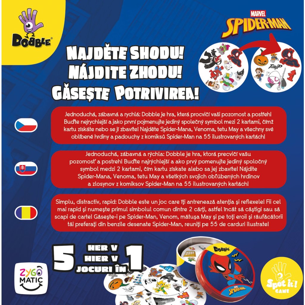 - Na 55 ilustrovaných kartách najdete oblíbené hrdiny a padouchy jako Spider-Mana, Venoma nebo tetu May.