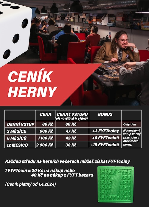 Miluješ deskovky, ale nemáš kde hrát, nebo sháníš partičku deskohráčů? Zapomeň na nudu a přijď to roztočit do FYFT herny! 🎲