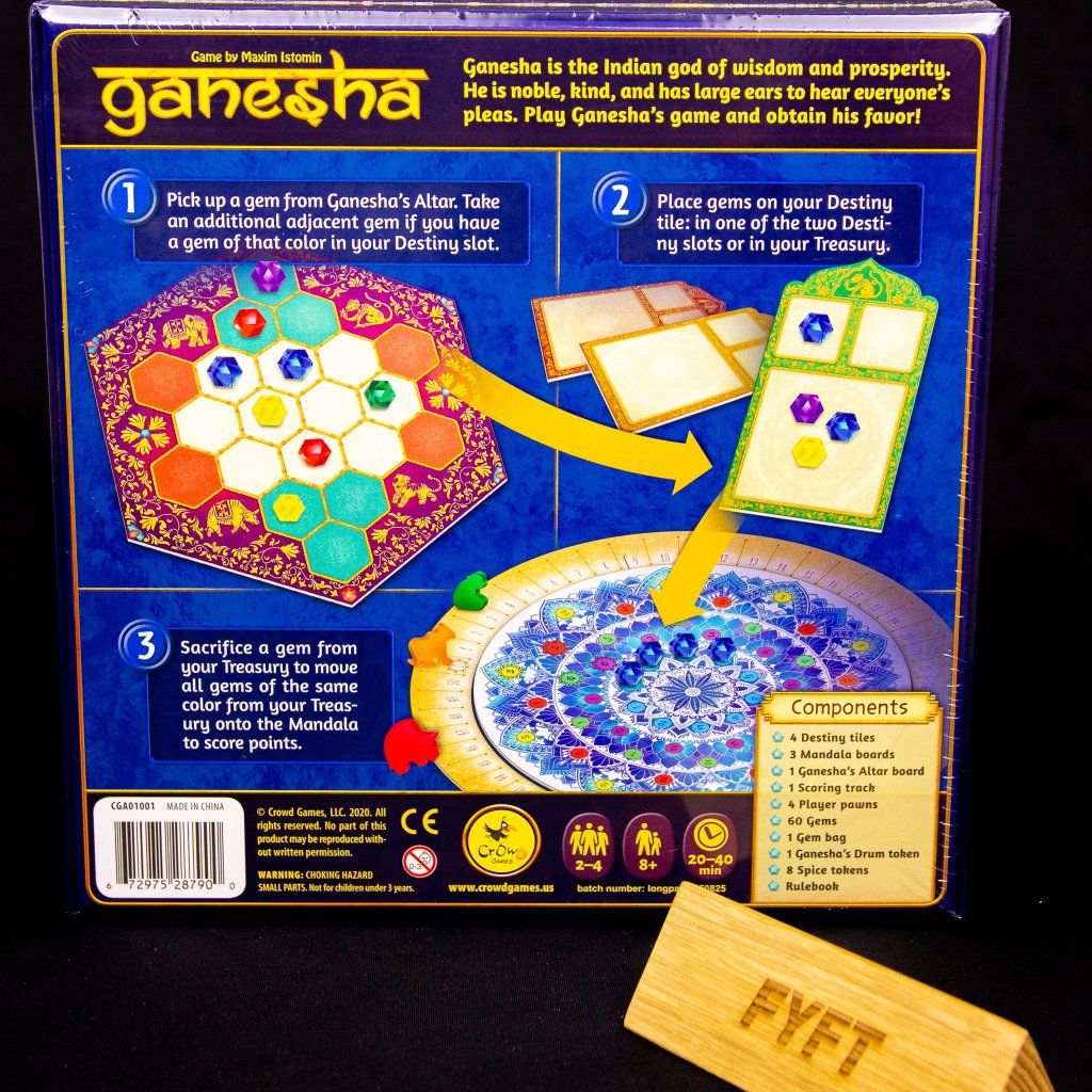 - Ganesha je příjemná rodinná hra s jednoduchými pravidly.