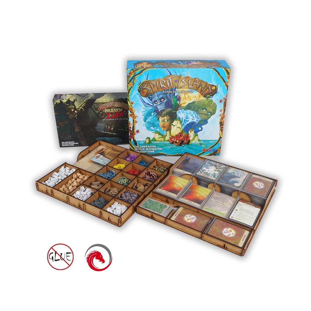- Dřevěný insert navržený pro základní hru Spirit Island a rozšíření Branch & Claw.