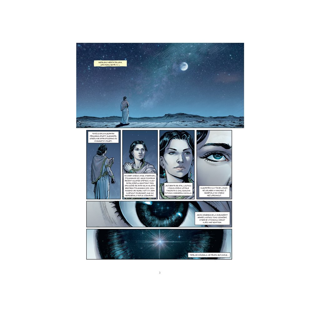 Historický komiks vám nabídne pohled na život významné královny Kleopatry, která byla jednou z nejslavnějších vůdců ptolemaiovské říše. Její bohatství bylo jen jedním z mnoha aspektů – stejně výrazná byla také její charismatická osobnost a nezávislý duch, které jí umožnily vytvořit důležitá spojenectví s Římany a obnovit Egyptu jeho kdysi zářivou slávu. Tím se stala klíčovou postavou v egyptských dějinách a nevědomky tak přispěla k pádu římské republiky.