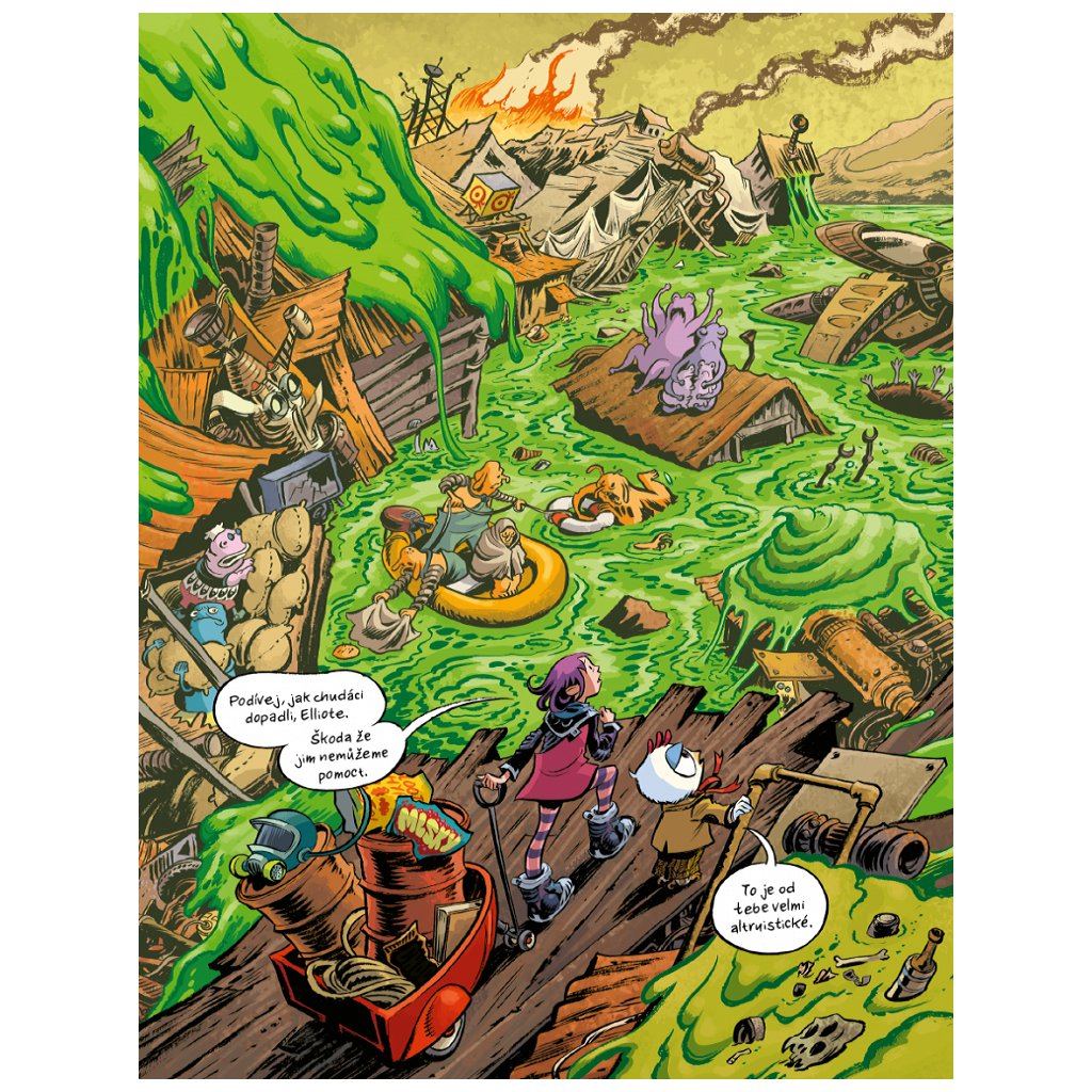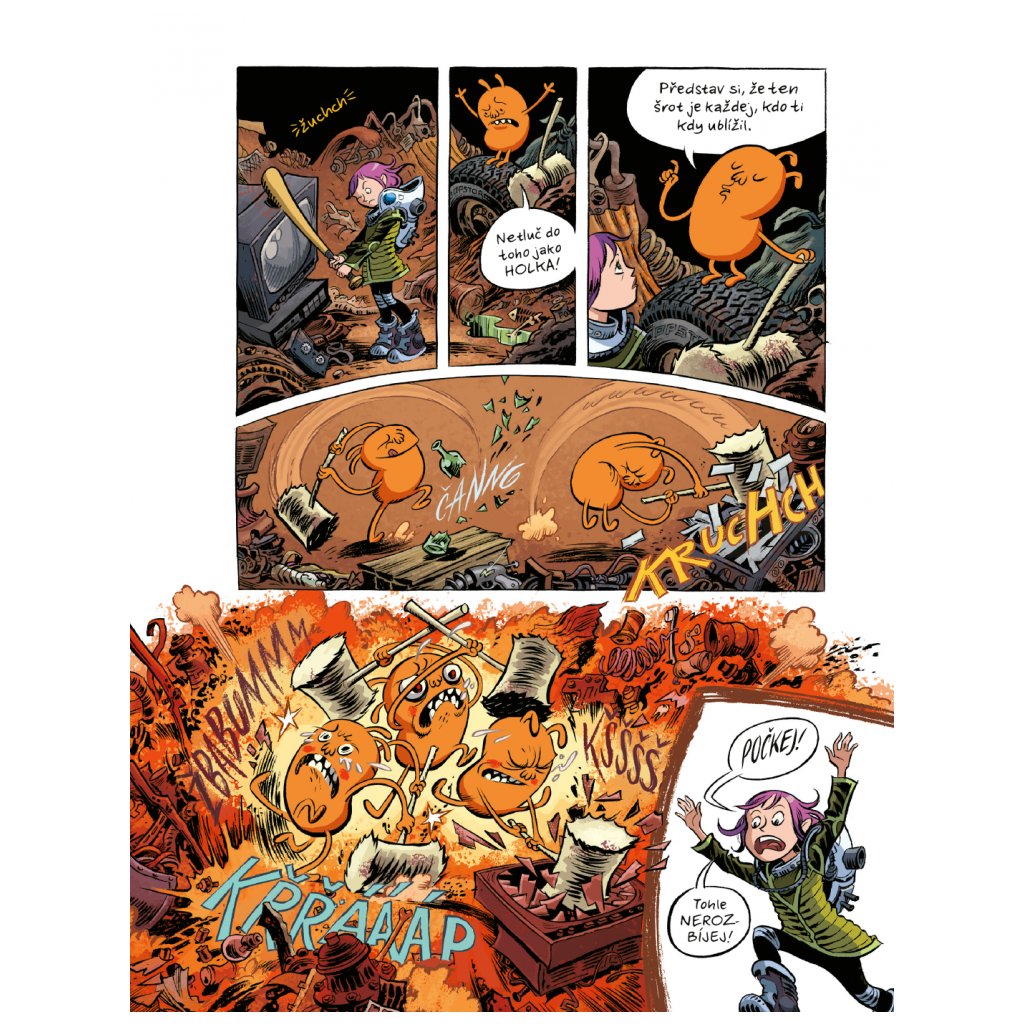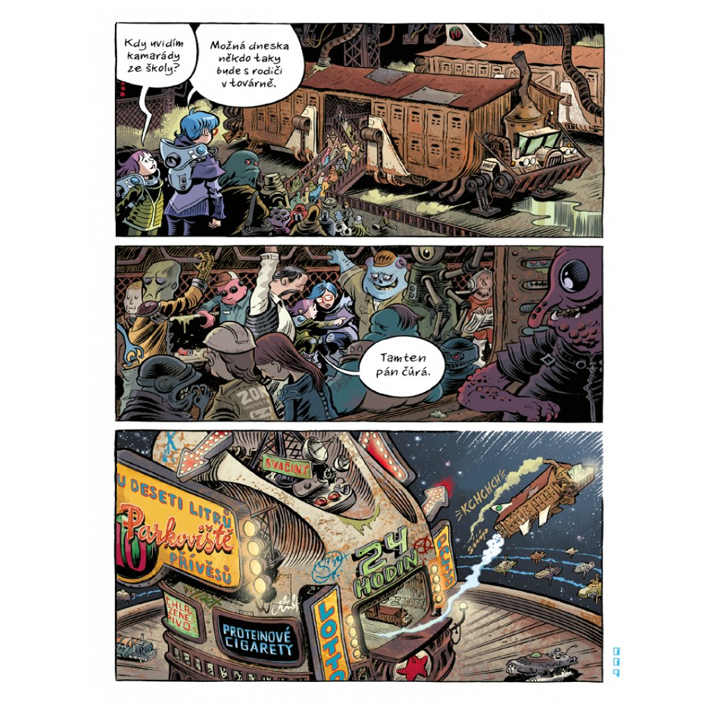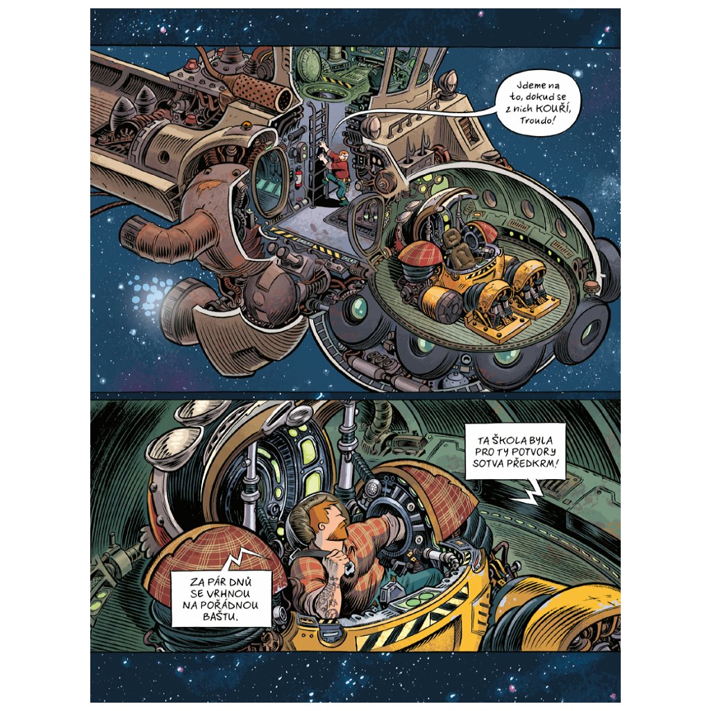 Pro Violet je rodina tím nejdůležitějším v celé galaxii. Když se její táta ztratí během nebezpečného úkolu, vydává se ho hledat v doprovodu nových kamarádů: Elliot je úzkostlivé kuře s darem předtuchy, přátelský Zacheus je posledním zástupcem svého druhu. Violet pozná, že vesmír je úžasný a pestrobarevný, ale má i svoje mouchy. Nebo přímo velryby, které vám můžou sníst školu.Úchvatně nakreslený komiks Kosmo knedlíci, jehož název odráží autorovu obrazotvornost, je velkolepým dobrodružstvím z budoucnosti, která v lecčem připomíná naši současnost. Je plný rozmanitých ras a originálních vesmírných lodí, ale tím hlavním je humorný a dojemný příběh překračující hranice žánrů i věkových skupin.