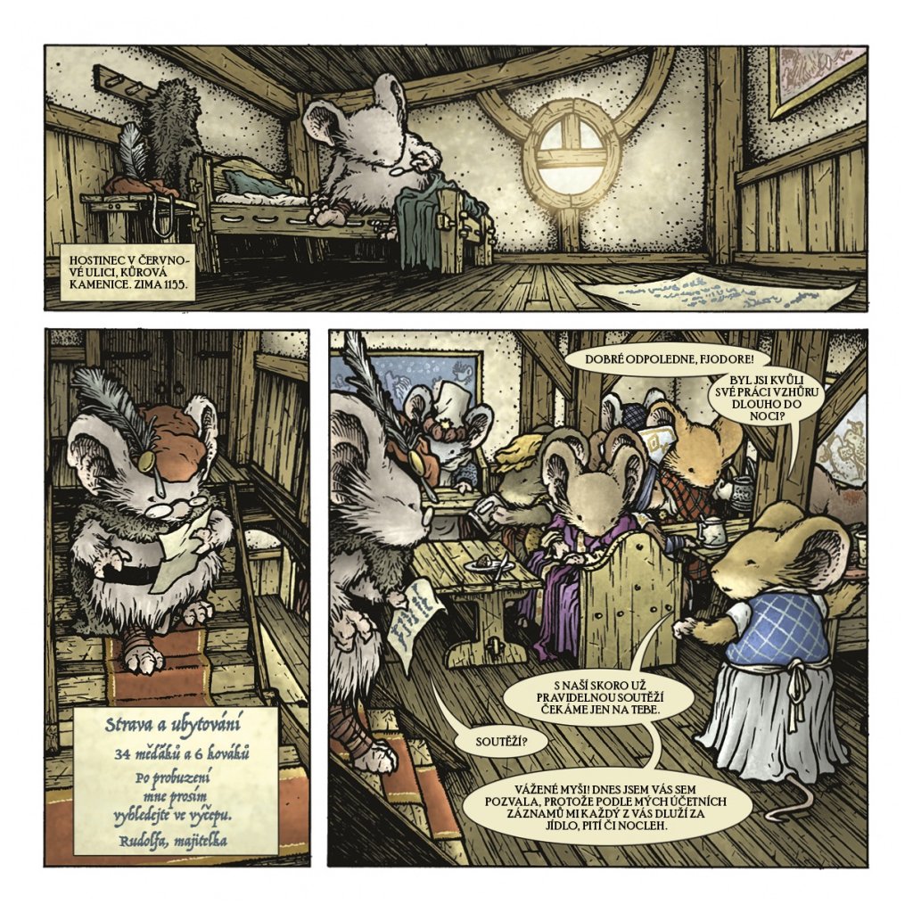 V městečku Kůrová Kamenice na západě Myších teritorií, v útulném hostinci V Červnové ulici, se scházejí myši z širokého dalekého okolí, přilákány vyhlášenou pohostinností jeho majitelky Rudolfy. A právě zde opět probíhá soutěž ve vyprávění příběhů. Tomu, jehož příběh se Rudolfě bude zamlouvat ze všech nejvíc, hostinská odpustí celý účet. Vyhlídka na takovou výhru je pro myši velmi lákavá, takže třetí večer plný fantastických vyprávění může začít.