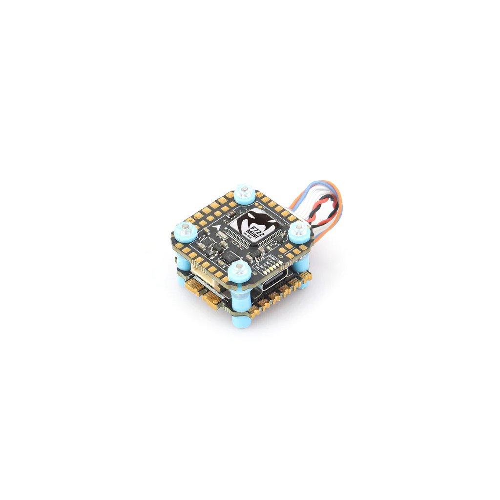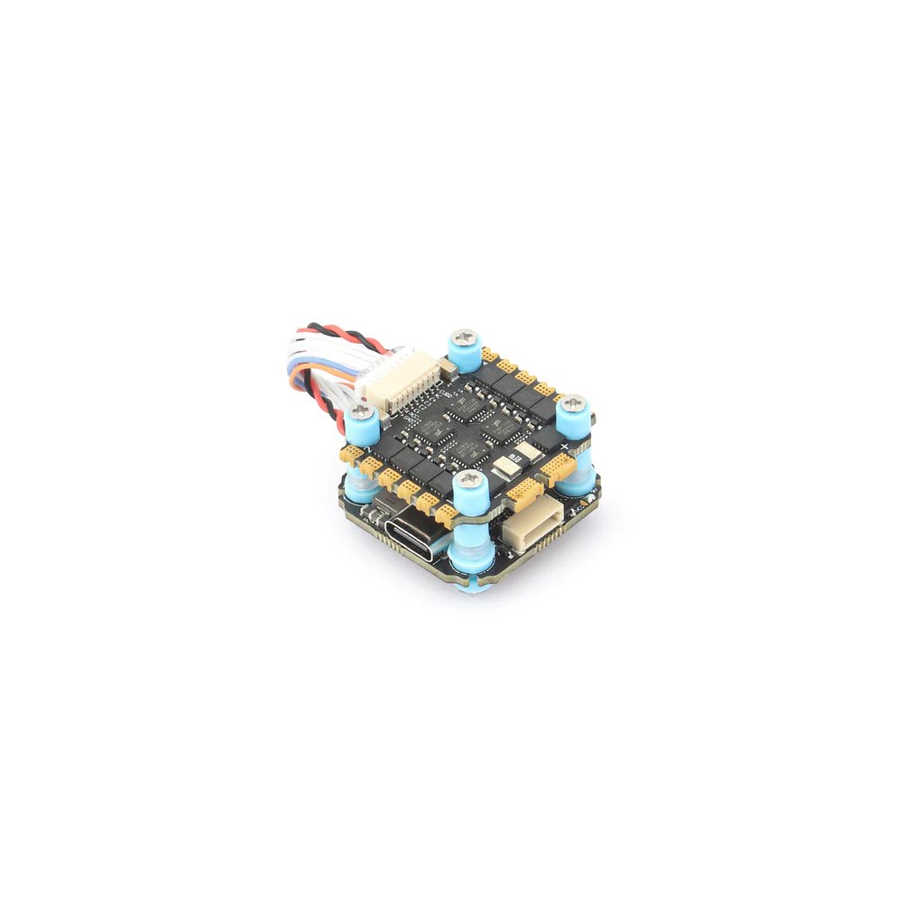 - Řídící jednotka má procesor F722, integrovanou 16 MB pamět pro blackbox a gyroskop ICM42688P pro co nejlepší let