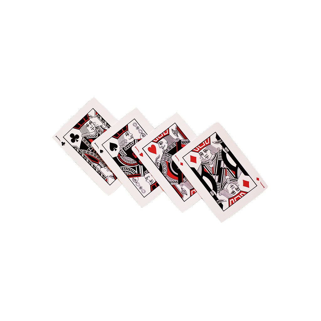- Obsah: 52 karet (+2 žolíci, +1 duplikát 8 piková, +1 double face karta)