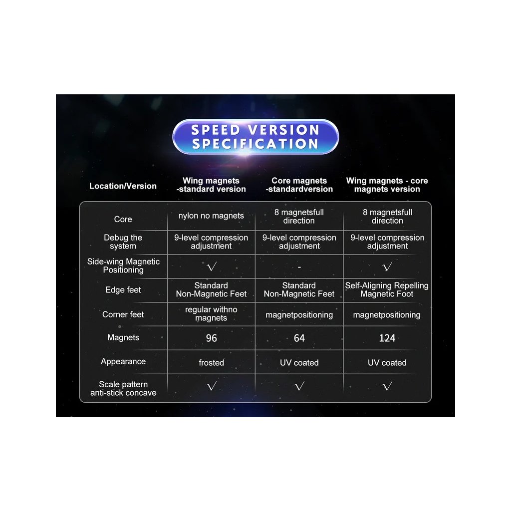 - Zachovává stejný vylepšený základní mechanismus jako vyšší modely, jako jsou center skirts (drážka pod středem), výřezy na hranách a anti-twist rohové krytky, což z něj činí zdokonaleného a lépe ovladatelného nástupce modelu MGC Beta 3x3.