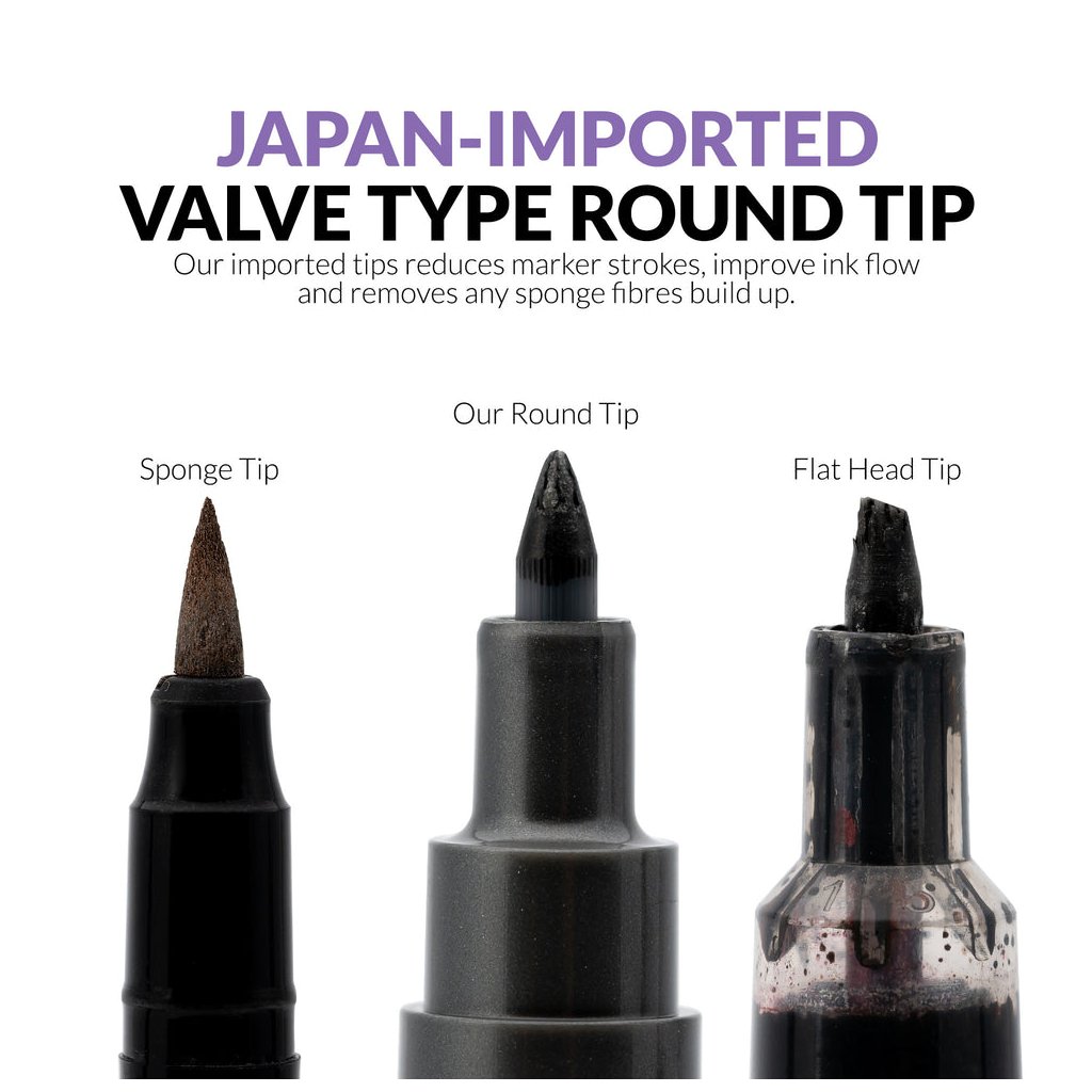 - Dovážené kulaté hroty z Japonska snižují tahy popisovače, zlepšují tok inkoustu a odstraňuje nánosy houbových vláken.