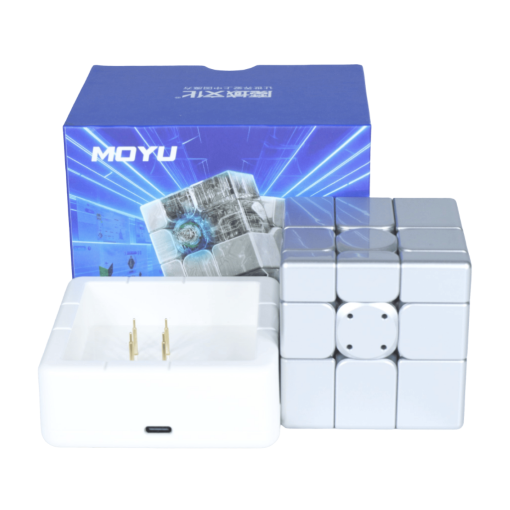 - Propojení s aplikací MoYu AI umožňuje sledovat statistiky, trénovat algoritmy a analyzovat svá řešení přímo v mobilu přes Bluetooth.