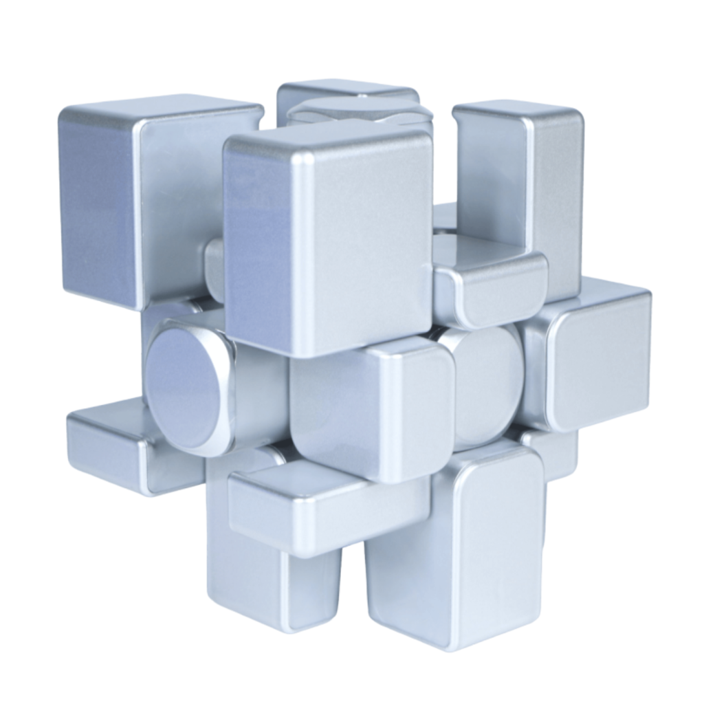 - Zrcadlový povrch přidává kostce vizuální rozměr navíc – skládáš podle tvaru dílků, ne podle barev, což je zcela jiná výzva než u klasické 3x3.