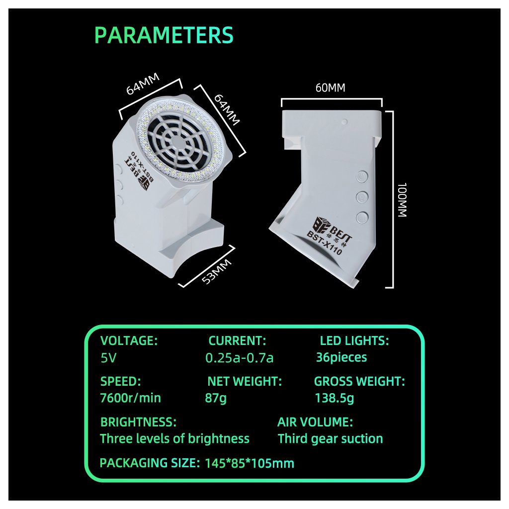 Odsavač kouře s LED pro pájení X110 (BESTOOL)