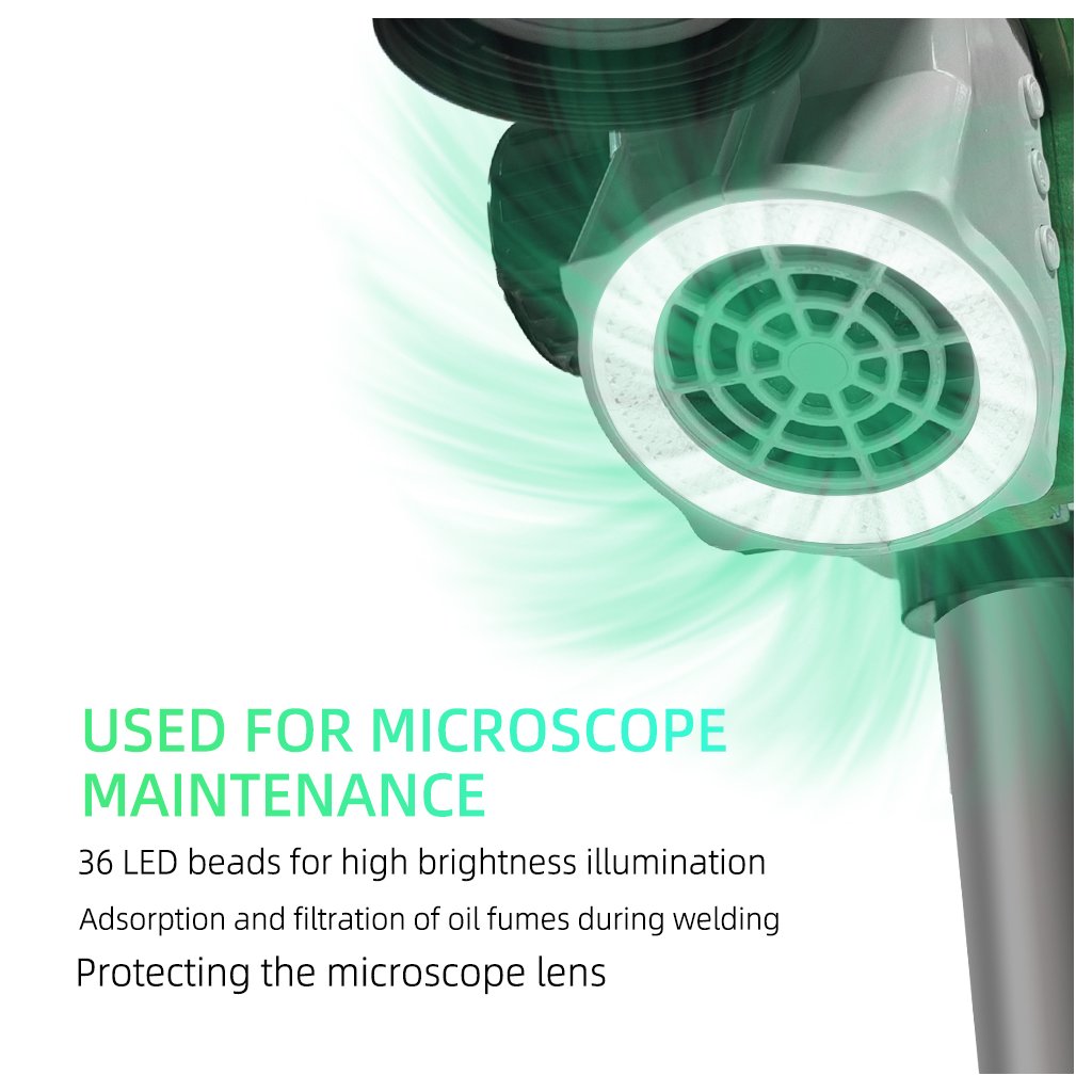 - Silný kruhový LED panel dokonale osvítí pracovní plochu – ideální pro precizní práci pod mikroskopem.
