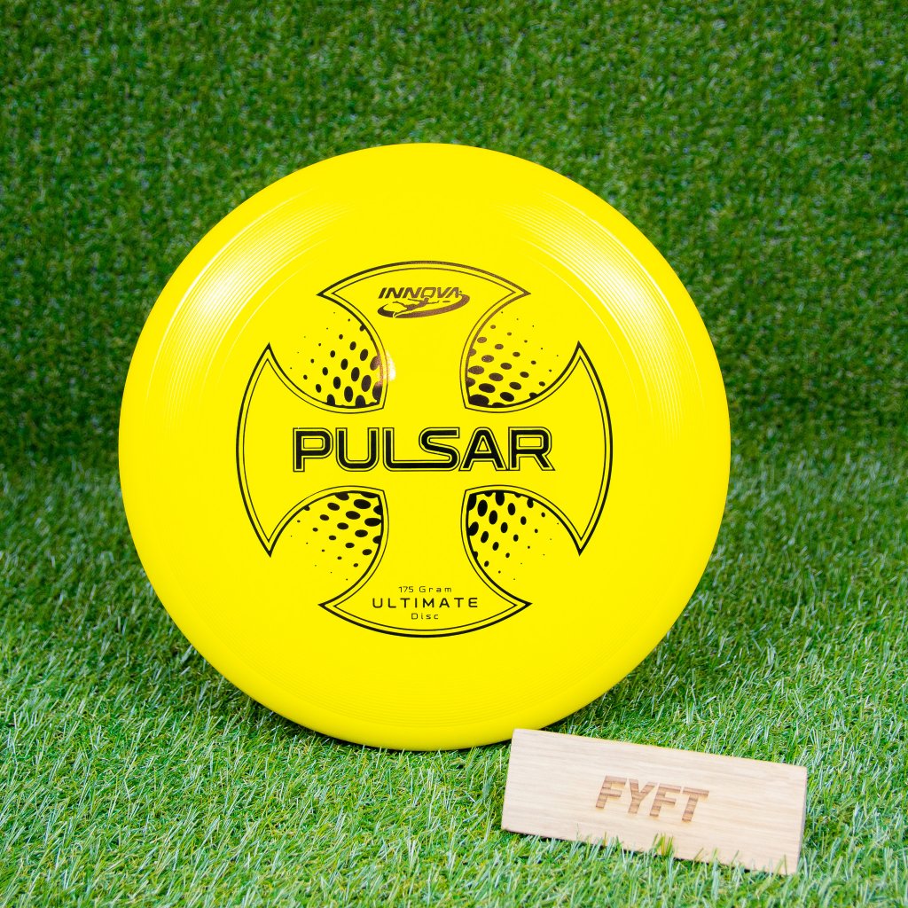 - Pulsar je létající talíř od Innovy, určený především na Ultimate frisbee, ale skvěle se hodí i na rekreační házení v parku.