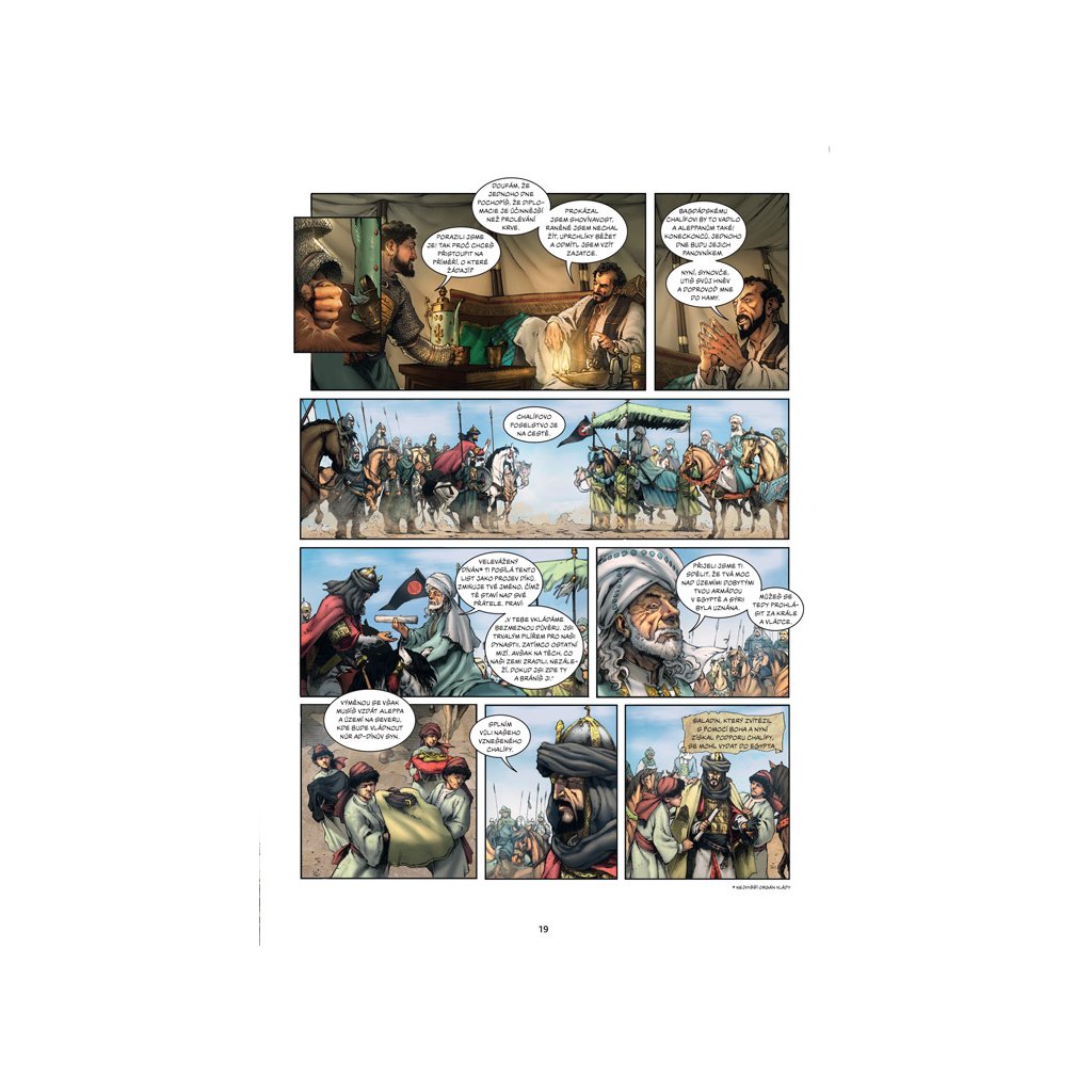 Saladin je významnou postavou dějin islámského světa a již za svého života se stal legendou. Byl muslimem kurdského původu a vynikal svým válečnickým uměním. V životě sledoval jen dva cíle: sjednotit islám na Blízkém východě pod autoritou jediného vládce, aby bylo možné vést úspěšnou svatou válku proti křižákům a vyhnat je z jejich držav v Sýrii, Libanonu a Palestině.