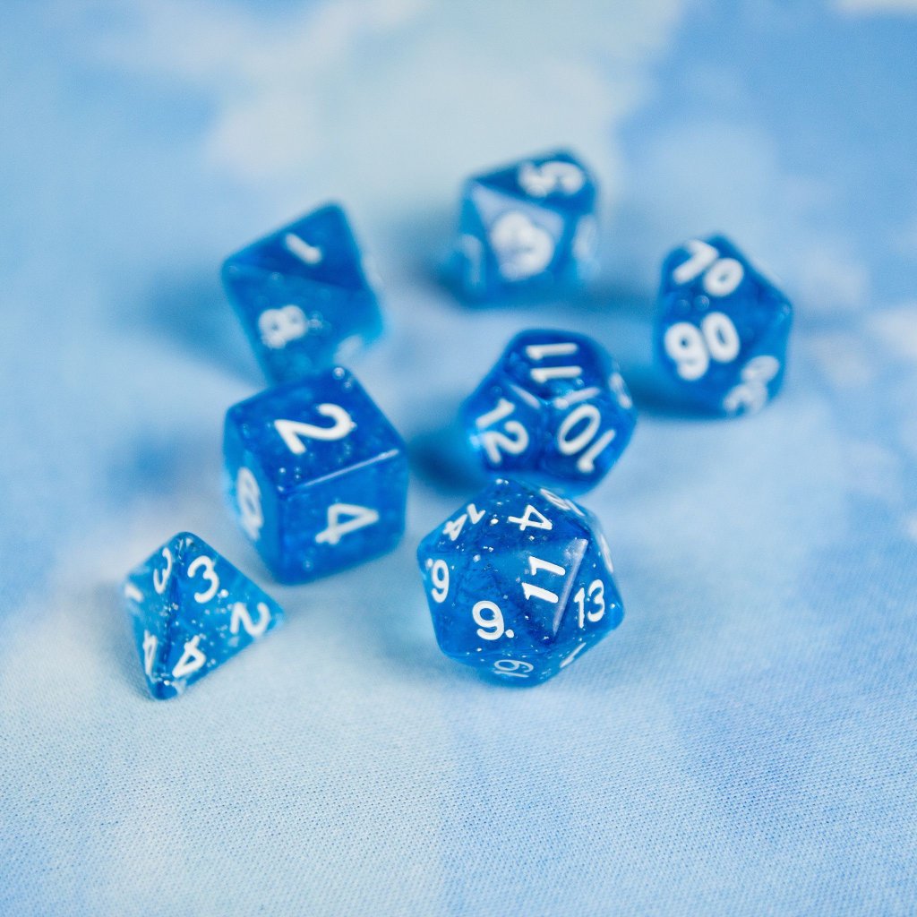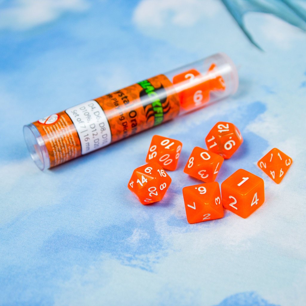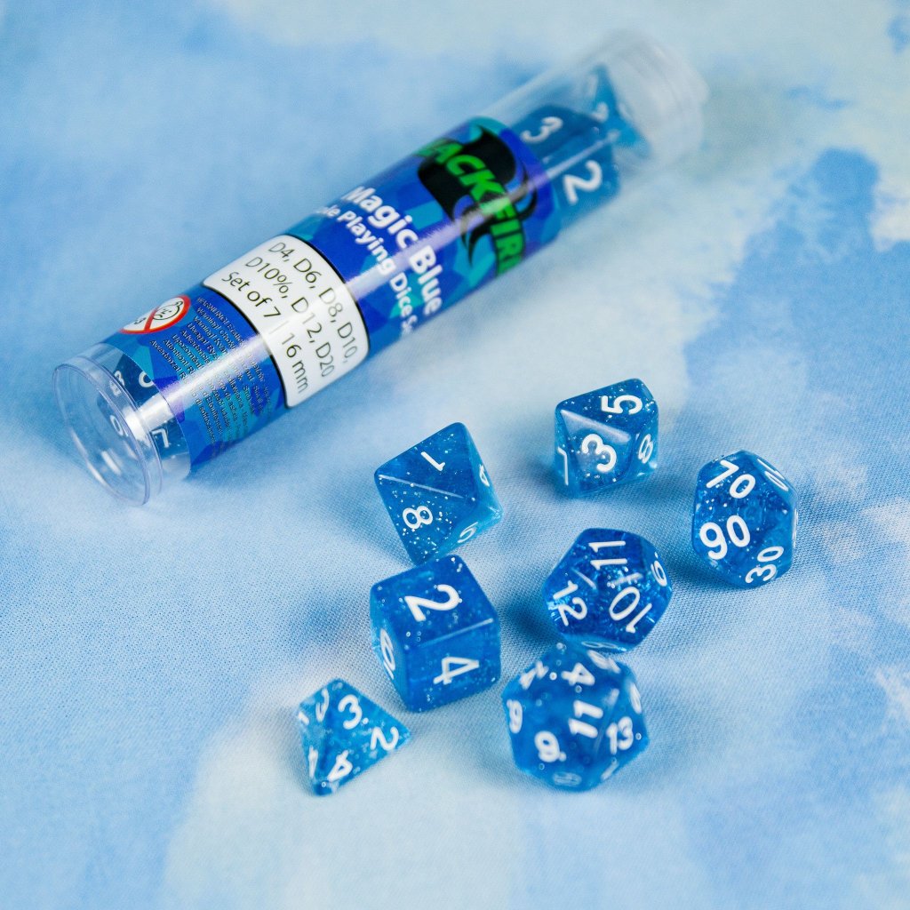 - Kostky: D4, D6, D8, D10, D12, D20, D10% (7 kostek)