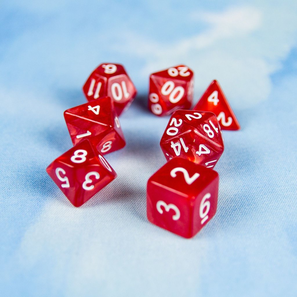 Set kostek pro RPG hry (D4, D6, D8, D10, D12, D20, D10%) kostky
