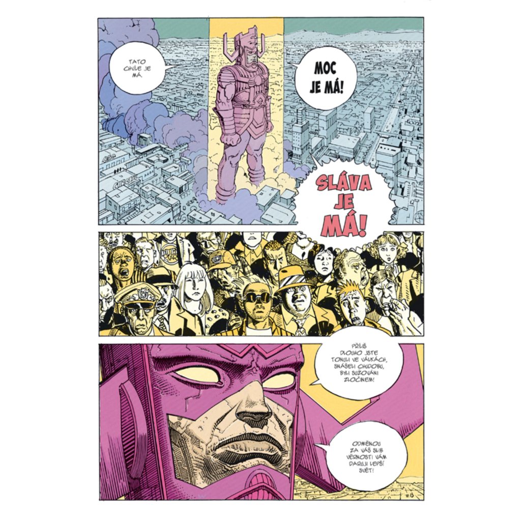 Jedno z největší děl Stana Leeho! Muž, který stvořil marvelovský vesmír, představuje ohromující příběh s jednou ze svých nejoblíbenějších postav – příběh nádherně nakreslený francouzským vizionářem Moebiem! Silver Surfer se už nevznáší vesmírem, byl sražen k zemi lidskou záludností a slabostí a nyní žije jako tulák. Spí ve škarpách a už ani neupírá zrak k obloze. Ale pak se na Zem vrací Galactus. Ne aby ji pohltil, ale aby byl uctíván. Aby zachránil svět před falešným bohem, musí se Surfer znovu chopit svého prkna – protože při boji za pravdu je důležitý každý člověk. Lee a Moebius, giganti amerického a evropského komiksu, se spojili, aby vyprávěli zcela nový a nezaměnitelný příběh Silver Surfera… nadčasové Podobenství, která je dnes stejně tak významné a aktuální jako v den, kdy vzniklo. Obsahuje sešity Silver Surfer (1988) č. 1 a 2.