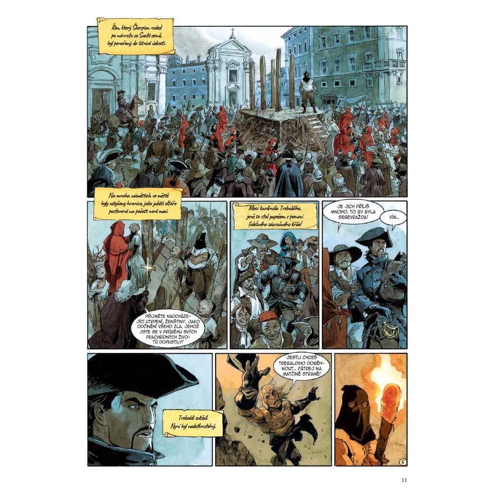 Škorpion se vrací do Říma z dlouhé výpravy na Východ. Poznává, že pod vládou papeže z rodu Trebaldi se Věčné město stalo strašlivým místem, kde si každým novým dnem není nikdo jistý svým životem. Má smysl v takové situaci pokračovat v boji s papežem? Ano! Škorpion však nejdříve hodlá zjistit, kdo je jeho otec, a kdo nese odpovědnost za smrt jeho matky. Hledání pravdy zatáhne hrdinu do her mezi rodinami, které od pradávna měly vliv na vývoj světa…