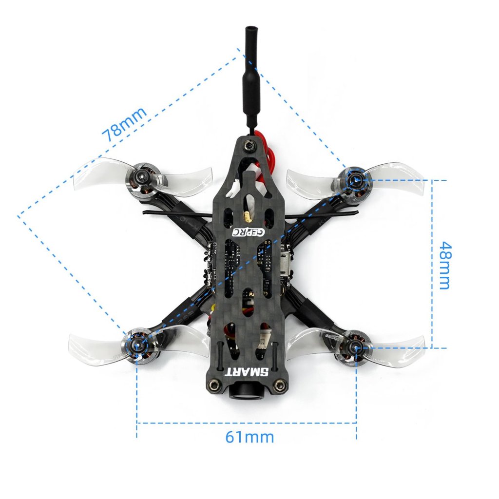 - Vybaven 5.8G analogovým videovysílačem o výkonu až 200mW a kamerou Caddx Ant zaručující kvalitní a čistý obraz i na velkou vzdálenost.
