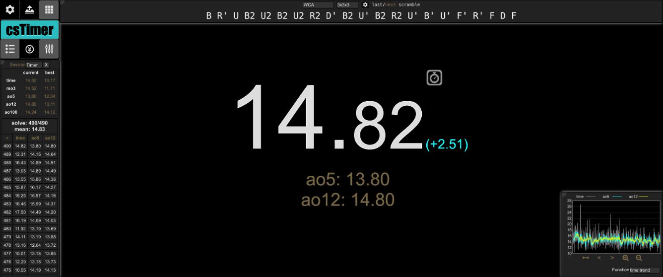 Měř si časy na CStimer.net, nebo podobném časovači. Jedna z nejlepších a nejvíc motivačních věcí, je sledovat, jak ti jdou časy postupně dolů.