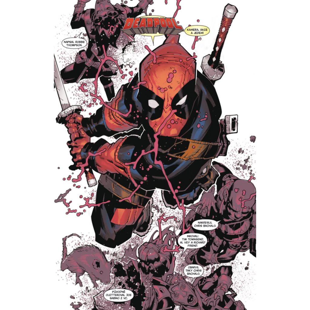 Týmovky jsou minulostí, nyní je tu Spider-Man vs. Deadpool! KDYŽ SPIDEY ZJISTÍ, že Wade prodává arzenál S.H.I.E.L.D.u na černém trhu, je to poslední kapka – romantické bratříčkování končí. Dva největší hrdinové všech komiksů si jdou po krku, a to bez rukavic. Jejich souboj je protáhne celým marvelovským vesmírem – a vyvrcholí střetnutím s Chameleonem! Ten se stačil z malého mizery změnit v jednoho z nejděsivějších superzločinců světa. Spidey i Deadpool dělají všechno pro to, aby ho dostali, jenže ono je dost těžké mlátit někoho, kdo může vypadat jako kdokoliv jiný! Podaří se ho naší dysfunkční dvojce zastavit (přičemž by mu Deadpool ještě rád vyfoukl parádní lup) dřív, než se stane něco tak strašlivého, že to bude naše hrdiny pronásledovat po zbytek jejich životů? Obsahuje sešity Spider-Man/Deadpool č. 23–28, jejichž autory jsou Robbie Thompson, Chris Bachalo, Scott Hepburn, Marcus To, Matt Horak, Tim Townsend, Al Vey, Richard Friend, Wayne Faucher, Victor Olazaba, Livesay, Chris O´Halloran a Ian Herring.