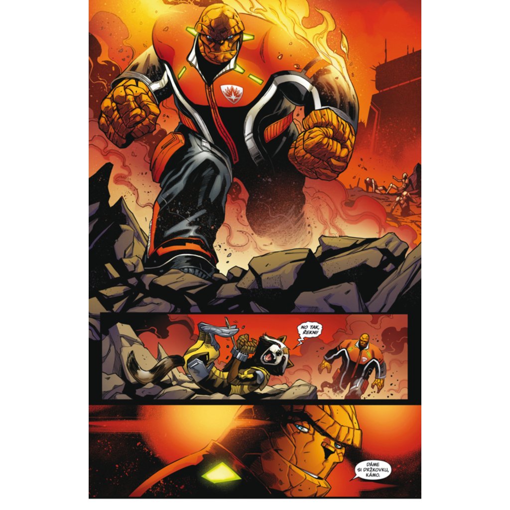 Je marvelovský vesmír dost veliký pro dva Star-Lordy? To zjistíte, když se Strážci rozhodnou postavit na odpor novému galaktickému řádu. Thingovi se možná stýská po některých pozemských věcech, ale uznává, že i pobyt ve vesmíru má své výhody. Dá se v něm například útočit pádem z oběžné dráhy! Venom a Groot mají zase plné spáry a větve boje se skrully – a všichni víme, že když Bendis píše o skrullech, nevzejde z toho nic dobrého! Dva nejnebezpečnější válečníci galaxie, Gamora a Drax, pro změnu přenesou boj na území Badoonů. A čeká nás dramatický návrat jedné postavy! Strážci jsou sice hledaní po celé galaxii, ale stráží pořád stejně úspěšně!