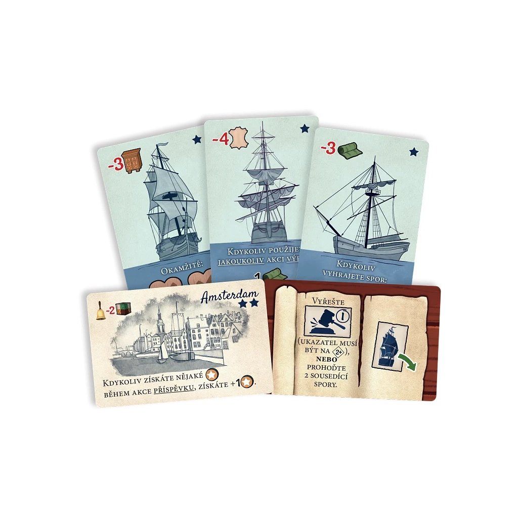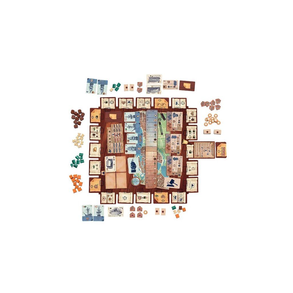 - Obsah: herní plán, karty (včetně karet budov a dalších), žetony, figurky, pravidla a další komponenty