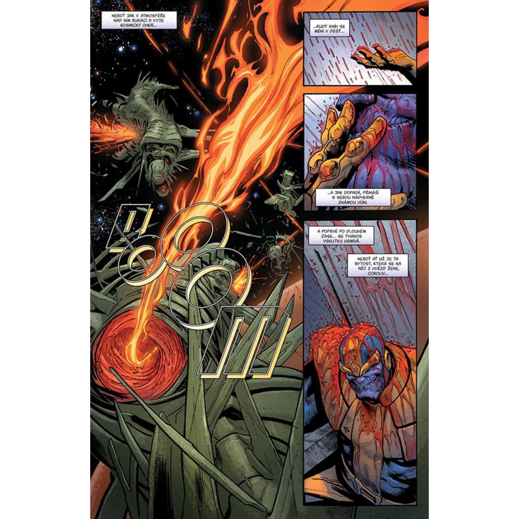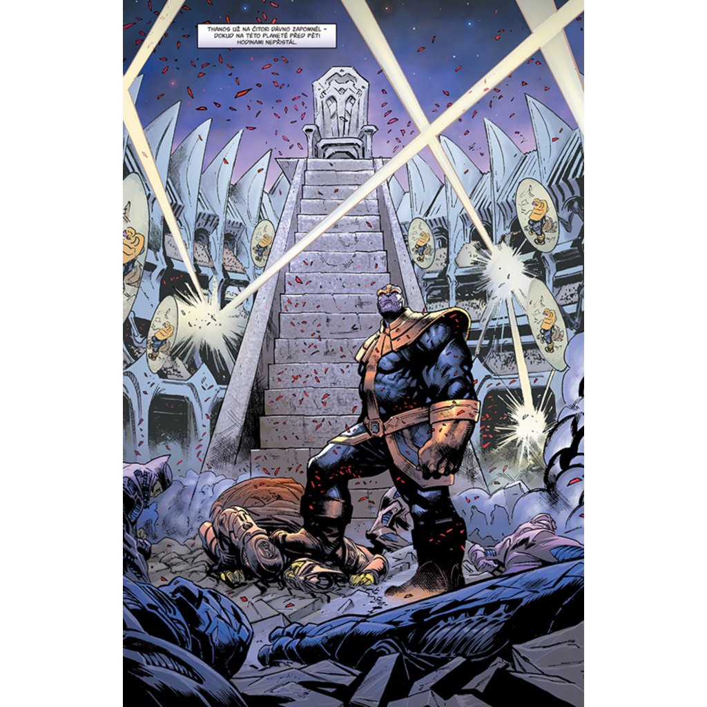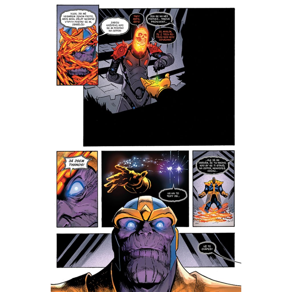 Zeptejte se těch nejmocnějších bytostí, proč se vesmír blíží ke svému konci, a ony vám odpoví dvěma slovy: „Thanos vítězí.“ A teď to dokonce vypadá, jako by se ta znepokojivá představa měla stát strašlivou realitou! Přesvědčte se na vlastní oči, co se stane, když Šílený Titán převezme vládu nad osudem! Thanos doputoval na konec času a zakusil moment absolutního vítězství… a stále není spokojený. Buďte svědky okamžiku Thanosovy největší slávy – a jeho nejhlubší hanby! Bez ohledu na to, jakou podobu na sebe Thanosovo vítězství nabere, je tu vůbec někdo – nebo něco –, kdo to může přežít? Vystupuje Silver Surfer a úplně nový kosmický Duch pomsty, Ghost Rider! Sebrané sešity komiksových řad Thanos (2016), číslo 13–18, a Thanos Annual (2018), číslo 1, na jejichž tvorbě se podíleli Donny Cates, Geoff Shaw, Antonio Fabela, Chris Hastings, Kieron Gillen, Katie Cooková, Ryan North, Al Ewing, Flaviano, Will Robinson, Frazer Irving, Federico Blee, Chris O‘Halloran, Heather Breckelová a Rachelle Rosenbergová.