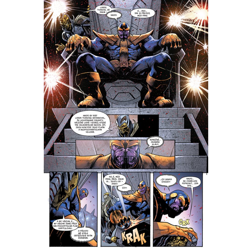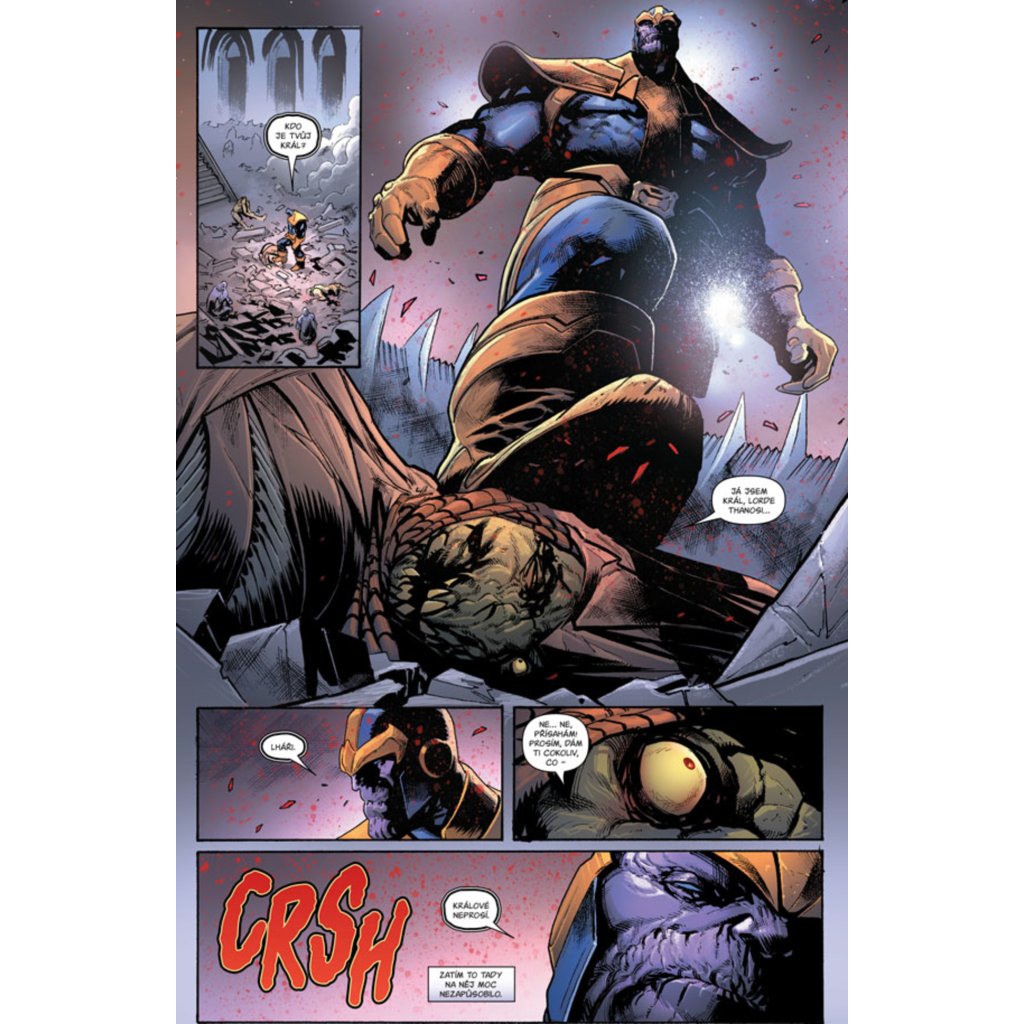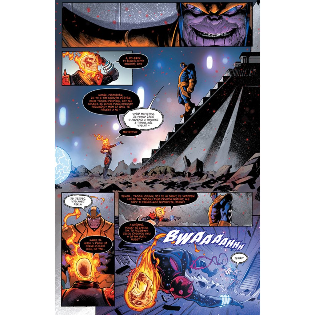 Zeptejte se těch nejmocnějších bytostí, proč se vesmír blíží ke svému konci, a ony vám odpoví dvěma slovy: „Thanos vítězí.“ A teď to dokonce vypadá, jako by se ta znepokojivá představa měla stát strašlivou realitou! Přesvědčte se na vlastní oči, co se stane, když Šílený Titán převezme vládu nad osudem! Thanos doputoval na konec času a zakusil moment absolutního vítězství… a stále není spokojený. Buďte svědky okamžiku Thanosovy největší slávy – a jeho nejhlubší hanby! Bez ohledu na to, jakou podobu na sebe Thanosovo vítězství nabere, je tu vůbec někdo – nebo něco –, kdo to může přežít? Vystupuje Silver Surfer a úplně nový kosmický Duch pomsty, Ghost Rider! Sebrané sešity komiksových řad Thanos (2016), číslo 13–18, a Thanos Annual (2018), číslo 1, na jejichž tvorbě se podíleli Donny Cates, Geoff Shaw, Antonio Fabela, Chris Hastings, Kieron Gillen, Katie Cooková, Ryan North, Al Ewing, Flaviano, Will Robinson, Frazer Irving, Federico Blee, Chris O‘Halloran, Heather Breckelová a Rachelle Rosenbergová.