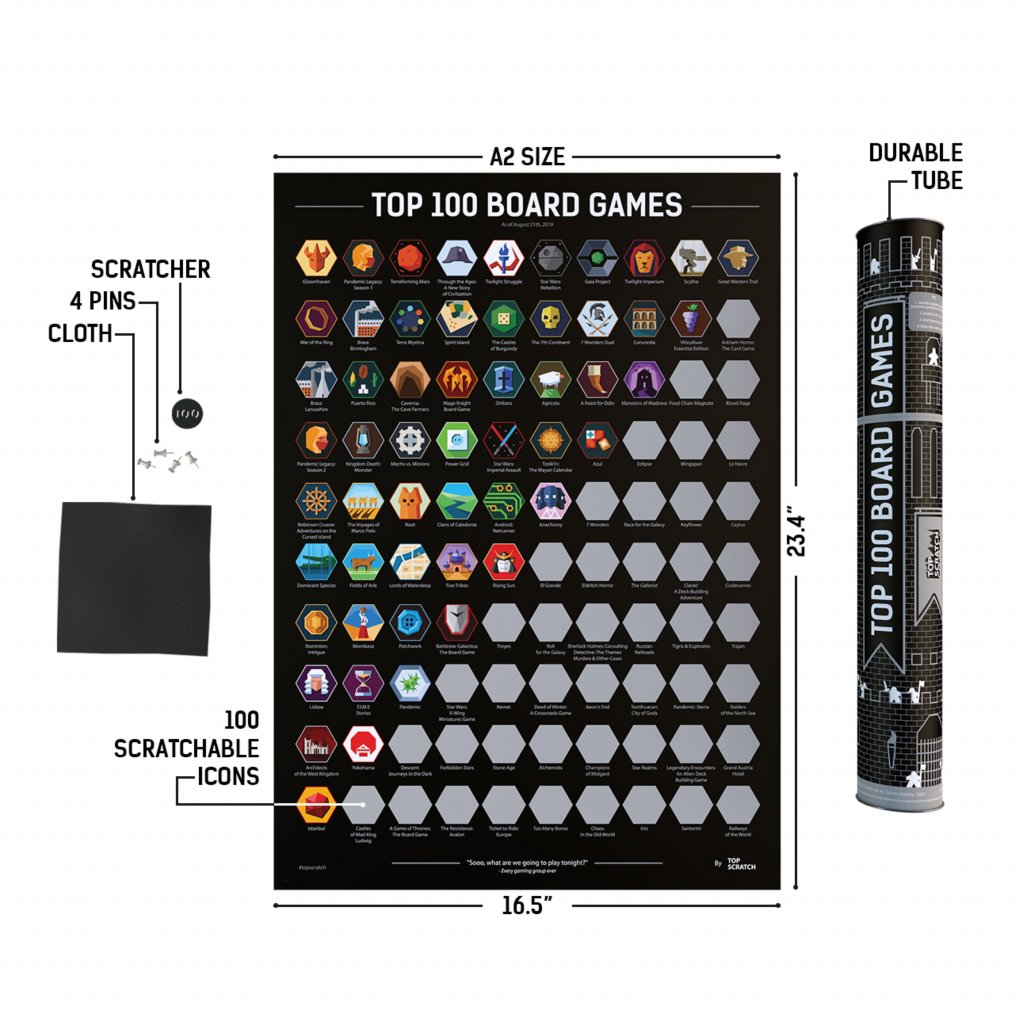 - Top 100 board games plakát obsahuje ikonky celkem 100 nejlepších deskových her (podle databáze BoardGame-Geek k srpnu 2019).