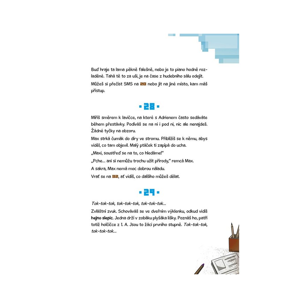 Jste uvězněni, hráči! Váš kamarád Adrien je génius. Díky němu jste neporazitelní v Minecraftu. Nic ale nejde podle plánu a Adrienova manipulace s hrou má katastrofální následky. Jste zaseknutí v počítačové hře… a vaše škola je plná nebezpečných mobů! Budete potřebovat chladnou hlavu a zdravý rozum při řešení hádanek, abyste se mohli vrátit zpět do reálného světa.