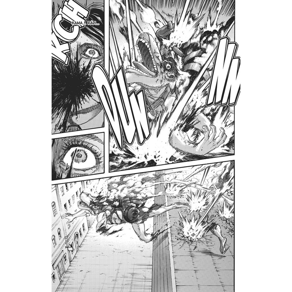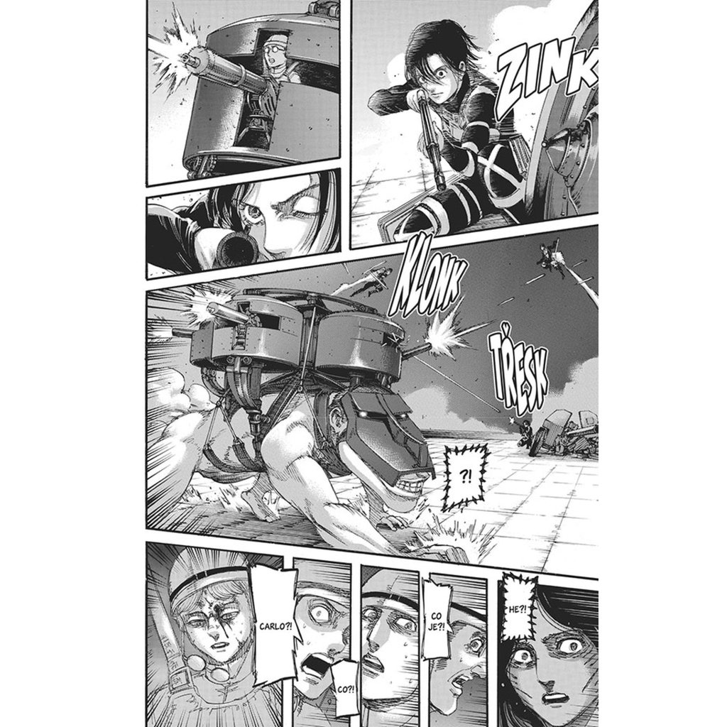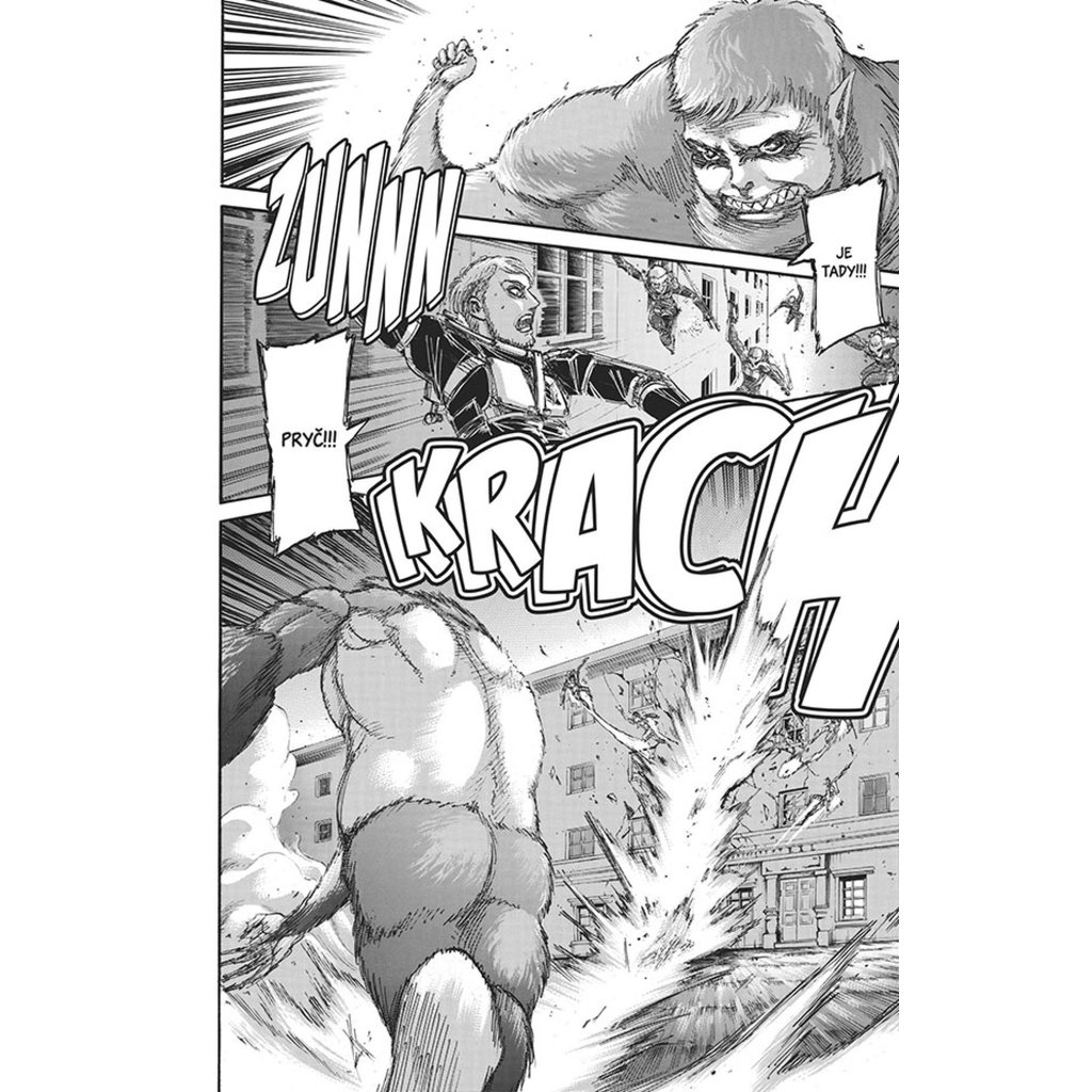 Nečekaná bitva v samém srdci Marleyské říše vrcholí! Na obou stranách bojují lidé i titáni – a vyhrát může jen jeden ze znesvářených protivníků. Povede Erenův šílený plán ke kýženému výsledku, nebo se marleyským bojovníkům z řad porobených Eldiánců podaří svou adoptivní vlast ochránit?