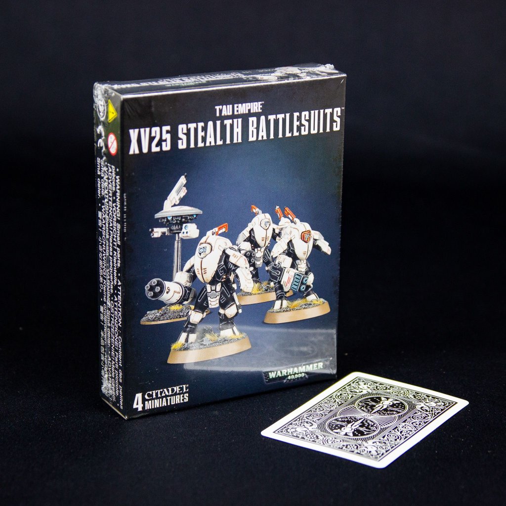 - Tato vícedílná plastová sada obsahuje vše, co je třeba k sestavení 3 Tau Empire XV25 Stealth Suits a jednoho Markerlight Drone