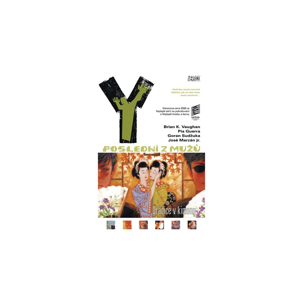 Svět bez mužů není zdaleka tak idylický, jak se nám ženy snaží namluvit… Necelé čtyři roky poté, co globální pohroma vybila všechny samčí savce na světě, se jediné dvě výjimky, Yorick Brown a jeho opičák Ampersand, ocitají v Japonsku. Ampersanda sem unesla záhadná žoldačka vyzbrojená samurajským mečem a Yorick se svými průvodkyněmi, agentkou 355 a doktorkou Allison Mannovou, jej vysledovali až sem, do Země vycházejícího slunce, která se vyrovnala se ztrátou mužů typicky japonským způsobem. Ampersandem v sobě zřejmě má klíč k přežití lidstva, a Yorick s agentkou 355 se za ním musí vydat do Tokia, kde na ně čeká setkání s pozůstatky jakuzy, dětskými gangsterkami a jednou někdejší hvězdou pop music, která zešílela. Dr. Mannová se zatím s novou přítelkyní Rose vydává za svou matkou. I když nečeká přívětivé přivítání, skutečnost předčí veškeré její obavy. Zároveň zde ale dojde k překvapivému odhalení, které může přispět k rozluštění té největší záhady: co, nebo kdo, je původcem Gendercidy. Dračice v kimonu je osmá kniha z cenami ověnčené ságy, kterou má na svědomí jeden z největších komiksových talentů současnosti, Brian K. Vaughan. Y: POSLEDNÍ Z MUŽŮ získal v roce 2008 hned dvě prestižní Eisnerovy ceny: v kategorii Nejlepší série na pokračování a výtvarníci Pia Guerra a José Marzán jr. byli oceněni v kategorii Nejlepší kreslíř/inker nebo kolektiv kreslířů/inkerů.Buďte první, kdo napíše příspěvek k této položce.
